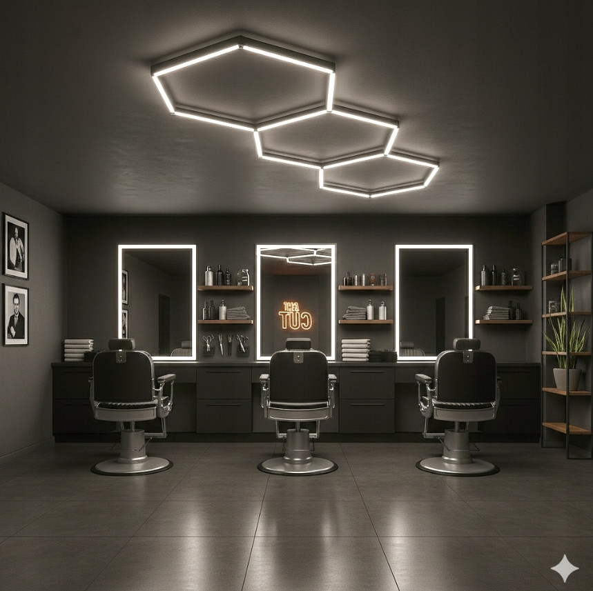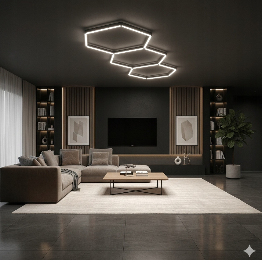 A modern méhsejt dizájn nem csak esztétikus, hanem professzionális megjelenést is ad a térnek — és kiválóan teríti a fényt, árnyékok nélkül.