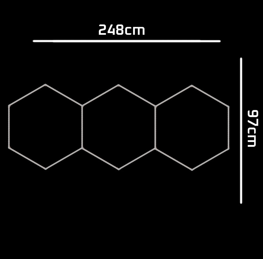 Hexagon LED hatszögletű mennyezeti panel világítás garázsműhelyhez (248 × 97 cm, 128W)